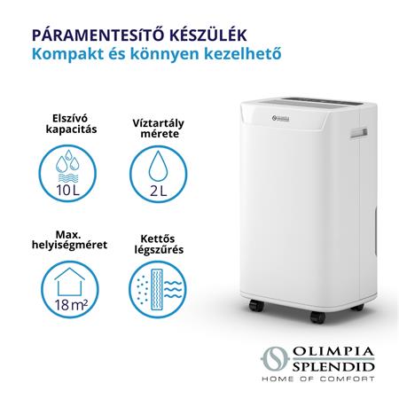 A készülék gyorsan és hatékonyan páramentesíti a helyiséget és használatával hozzájárulhat a penészesedés elkerüléséhez, az optimális páratartalom kialakításához és a dohos szag megszűnéséhez. A készüléket számos kényelmi funkcióval látták el, amelynek köszönhetően egyszerűen kezelhető és kompakt méretéből és kialakításából adódóan könnyedén mozgatható, áthelyezhető. Ráadásul kettős szűrőrendszerrel (por- és aktívszén szűrő) a levegőt is tisztábbá teheti!